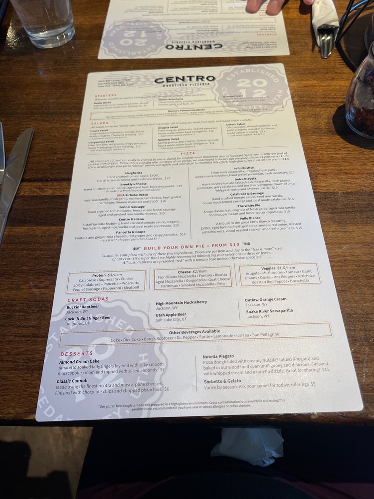 Centro Woodfired Pizzeria offers a delightful Italian experience right in Cedar City. Specializing in wood-fired pizzas, their menu features a variety of classic and innovative options, with highlights including the Calabrese and Dolce Diavolo pizzas, both praised for their authentic flavors.